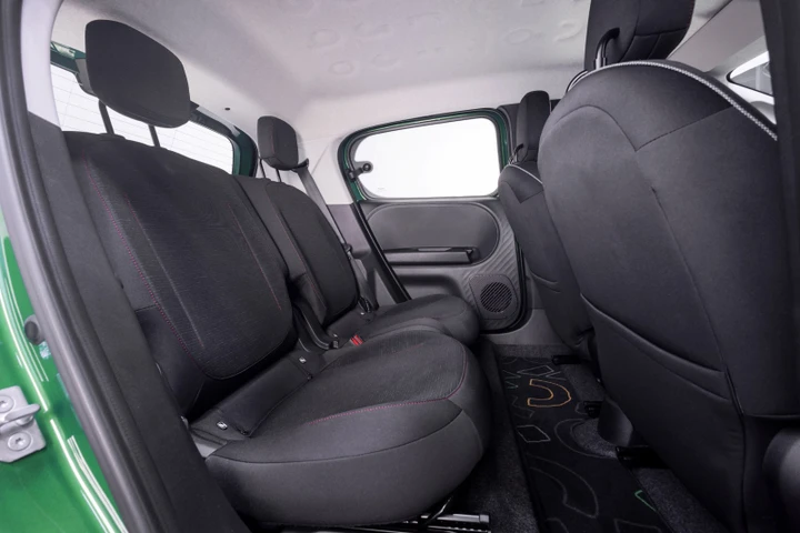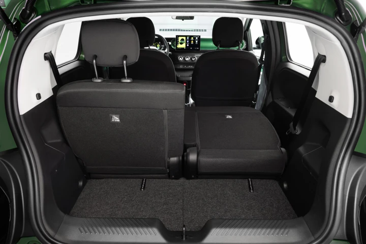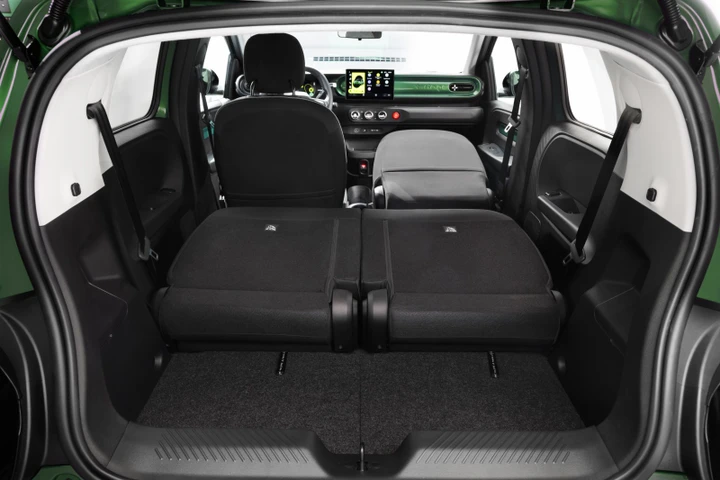 Al posteriore lo spazio non è molto ma è quello che basta per spostamenti quotidiani. Condivisibile o meno invece la scelta dei finestrini posteriori a compasso. La vera chicca della seconda fila di posti è però rappresentata dai sedili scorrevoli, funzione ereditata dalla prima Twingo, che possono scorrere separatamente avanti e indietro su 17 cm. Questo può portare la capacità di carico nel bagagliaio da 360 litri, con i sedili in posizione avanzata, a oltre 1.000 litri abbattendo comodamente la panchetta posteriore.