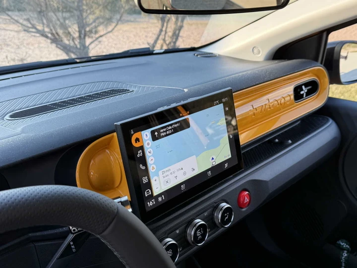 Le dimensioni sono perfette per la giungla urbana: 3,79 metri di lunghezza. Ma è dentro che stupisce: grazie al passo lungo, con le ruote spinte agli estremi della carrozzeria, lo spazio a bordo è sorprendente. Renault ha puntato su un abitacolo minimalista e allo stesso tempo tecnologico: al centro della plancia troviamo uno schermo da 10,1 pollici che monta il sistema OpenR Link il quale, a differenza di tutte le altre citycar, ha il software basato su Google Automotive, e questo significa poter navigare con le mappe sempre aggiornate di Google Maps (di serie sull’allestimento Techno) e avere un’integrazione perfetta con lo smartphone.