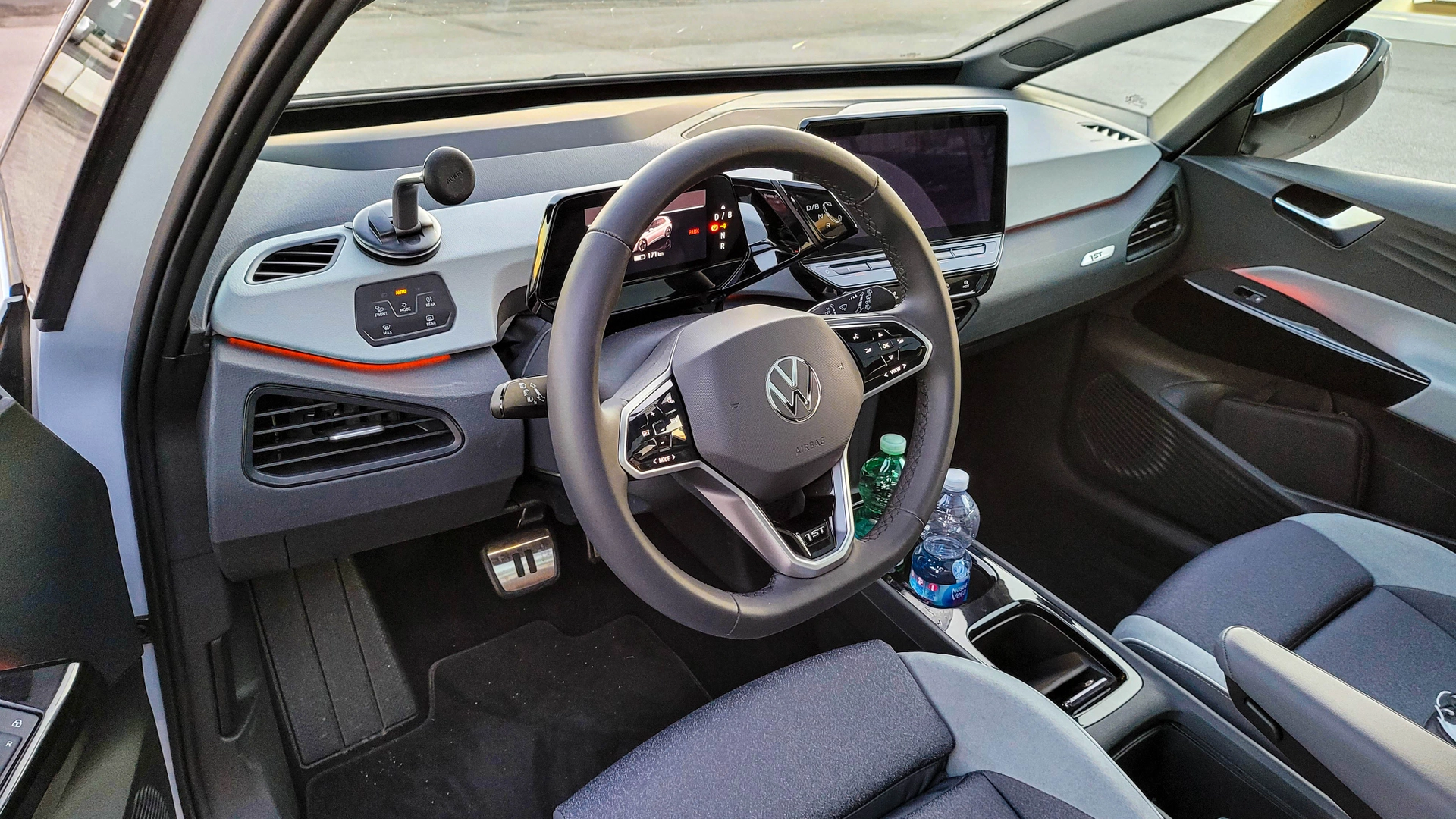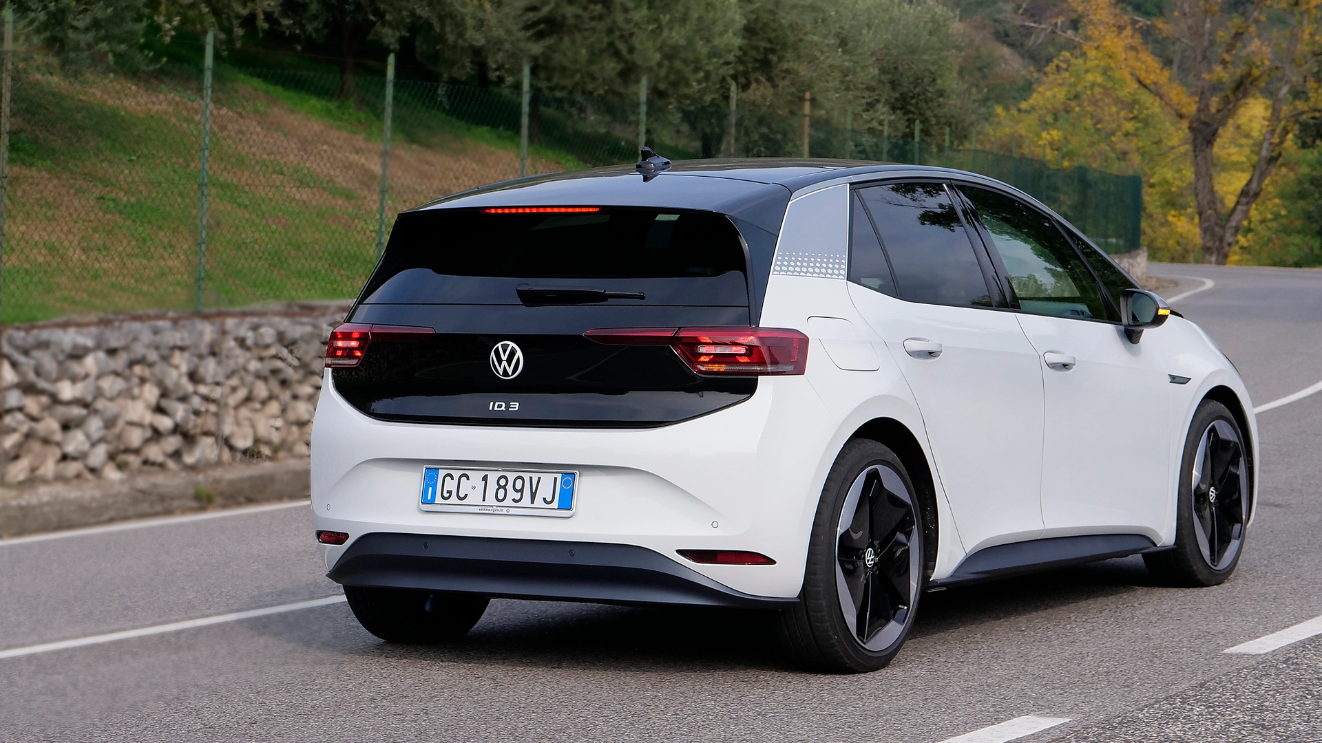 L'assetto base non è adattivo, quello resta un optional che porta il controllo elettronico degli ammortizzatori, e punta al comfort in assorbimento, sfruttando la rigidità del telaio per fare il lavoro sporco in curva e ridurre il rollio garantendo il sostegno necessario. Ottima la tenuta: telaio e mappatura dolce ma decisa fanno sì che ID.3, pur essendo una trazione posteriore, risulti molto meno nervosa di una MX-5 o una BMW. È fatta così proprio per essere adatta a tutti, e in questo risulta costretta a rinunciare a parte di quella piacevole imprevedibilità di una trazione posteriore.