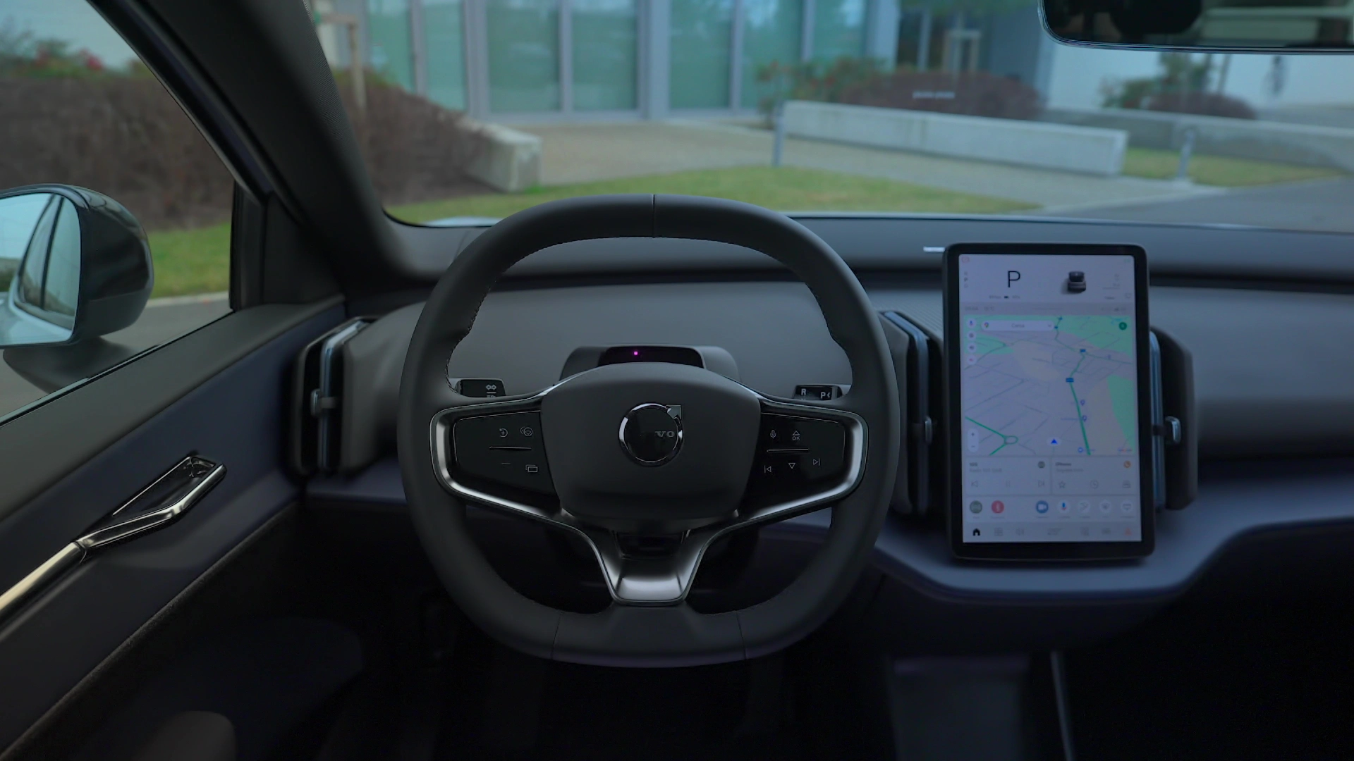 La piattaforma è Android Automotive e questo significa che troviamo i servizi Google oltre alla possibilità di poter installare ulteriori app direttamente dal Play Store per arricchire di funzionalità digitali la vettura. La connettività è 5G. Sulla parte alta dello schermo possiamo vedere le principali informazioni di marcia come la velocità, l'autonomia e il livello della batteria. Al di sotto si gestiscono tutte le app e le funzioni dell'infotainment vero e proprio. L'aspetto dell'abitacolo è minimalista ma assolutamente non povero e all'altezza della qualità Volvo. Largo uso di materiali riciclati per i rivestimenti come già accennato. Solidi gli assemblaggi e gradevole la resa al tatto dei materiali utilizzati.