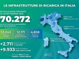 Continua a crescere la rete di ricarica per le auto elettriche in Italia che ha superato quota 70.000 punti
