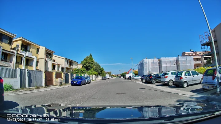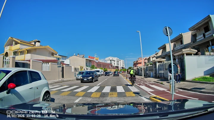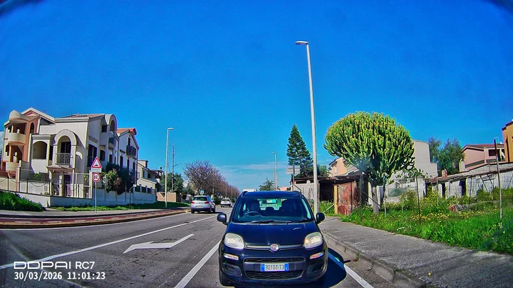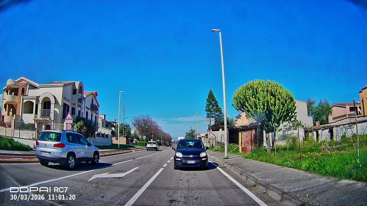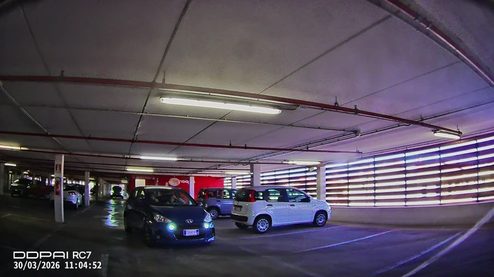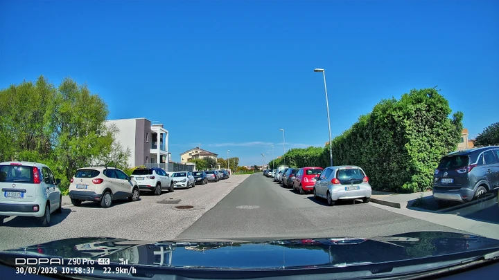 Qui si entra nel cuore del prodotto. La camera frontale è quella più evoluta e offre una risoluzione elevata, con un livello di dettaglio molto buono sia di giorno che in condizioni più difficili. Le targhe dei veicoli risultano leggibili nella maggior parte delle situazioni e la gestione della luce è convincente anche con forte contrasto.
