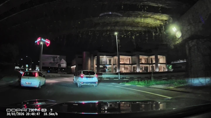 Durante l’utilizzo reale, uno degli aspetti che colpisce di più è la resa notturna. In città, con illuminazione stradale, la qualità resta stabile e pulita. In strade meno illuminate, la camera frontale continua a comportarsi bene, mentre quella posteriore perde leggermente dettaglio, cosa abbastanza normale per questa categoria.
