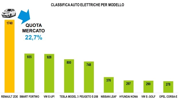 La piccola francese è riuscita a superare la Tesla Model 3, seconda in questa particolare classifica e la Volkswagen e-Golf, comunque molto staccata. Numeri interessanti che dimostrano come il modello stia ottenendo un ottimo successo in termini di vendite. Un risultato bissato pure in Italia. La Zoe, nei primi 5 mesi dell'anno è stata l'auto elettrica più venduta con 1.740 unità. A seguire la Smart ForTwo e la Volkswagen e-Up!.