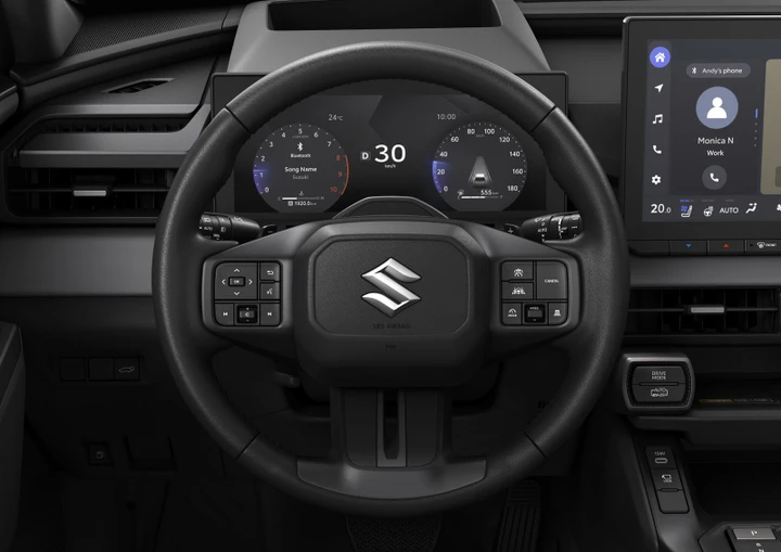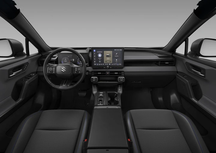 Salendo a bordo, l’impostazione è quella del SUV Toyota, loghi Suzuki a parte. Troviamo quindi la strumentazione digitale da 12,3 pollici dietro al volante, mentre centralmente sulla plancia è collocato il display del sistema infotainment da 12,9 pollici da cui è possibile gestire la maggior parte delle funzionalità del SUV. Si può avere anche un head-up display e non mancano nemmeno il pad per la ricarica wireless degli smartphone e 5 porte USB di tipo C.