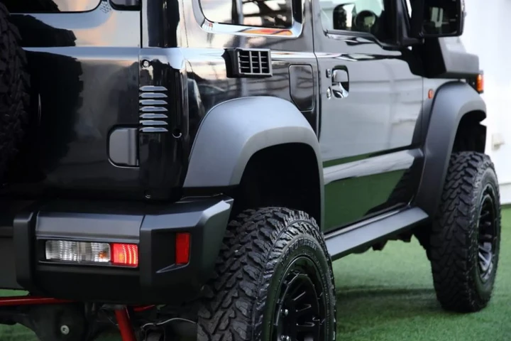 Sotto al cofano troviamo il solito 4 cilindri aspirato di 1,5 litri da poco più di 100 CV della Suzuki Jimny originale, abbinato a un cambio manuale a cinque marce oppure a un automatico a quattro rapporti. Ovviamente telaio a longheroni e trazione integrale. Oltre al kit, il preparatore offre diverse Suzuki Jimny già modificate in diverse colorazioni con prezzi da 4.250.000 yen che al cambio sono poco meno di 23 mila euro.