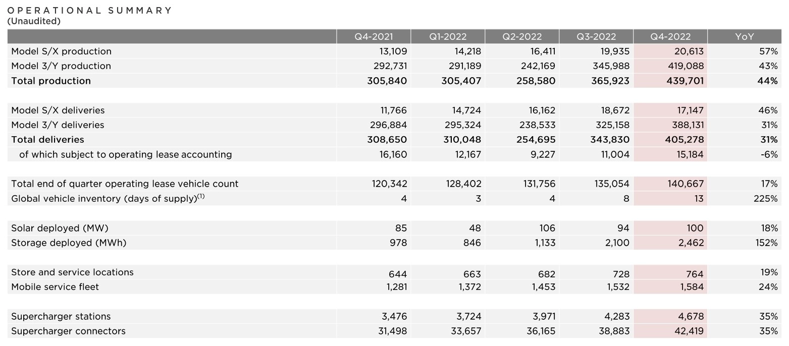 Complessivamente, nell'intero 2022, Tesla ha ottenuto ricavi pari a 81,462 miliardi di dollari, pari ad un incremento del 51% rispetto al 2021. A contribuire a questa crescita, anche l'importante aumento delle vendite delle auto elettriche. Nel 2022, infatti, sono stati consegnati oltre 1,3 milioni di veicoli pari ad un aumento del 40% rispetto al 2021.