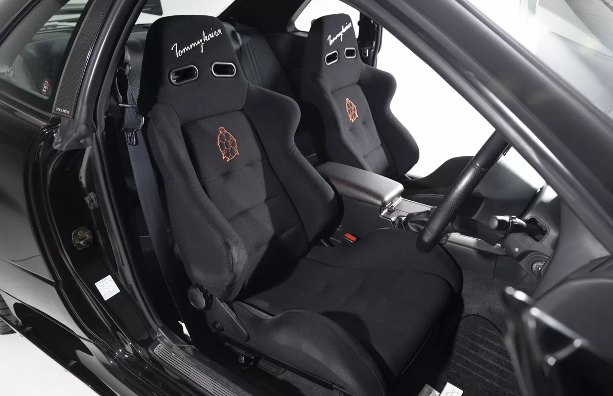 Il profilo laterale è enfatizzato da parafanghi allargati e minigonne estese, mentre al posteriore spicca un’ala fissa a doppio profilo, montata su supporti in alluminio. Anche se i puristi potrebbero preferire la linea completamente originale, le modifiche firmate Tommykaira risultano equilibrate e coerenti con lo spirito dell’auto.