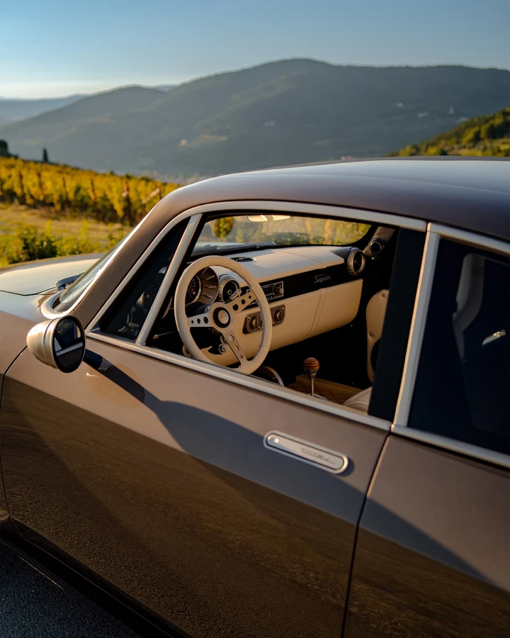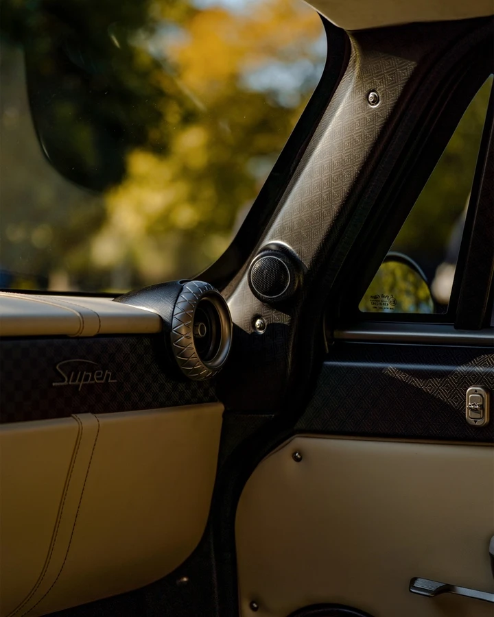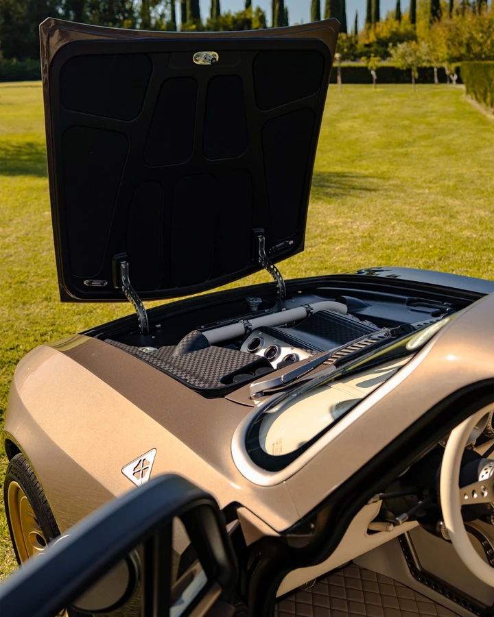 A questo esemplare è stato quindi dato il nome di “Farina" che è stato scelto direttamente dal cliente che ha commissionato l’auto. Vettura che si caratterizza soprattutto per la particolare colorazione chiamata “Luci del Bosco", cioè un marrone metallizzato ispirato alle tonalità delle auto sportive italiane degli anni ’70. Inoltre, la vettura presenta finiture in nichel satinato e cerchi in oro brillante su misura. Non è però finita qui perché Totem GT Super “Farina" è stata ulteriormente impreziosita dal pacchetto di rivestimenti in fibra di carbonio Totem Design, con finitura satinata, applicata sia all’interno che all’esterno.