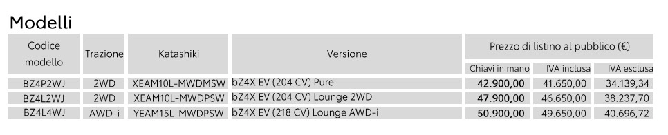 Il listino del SUV elettrico di casa Toyota parte da 42.900 euro per la versione Pure 2WD.