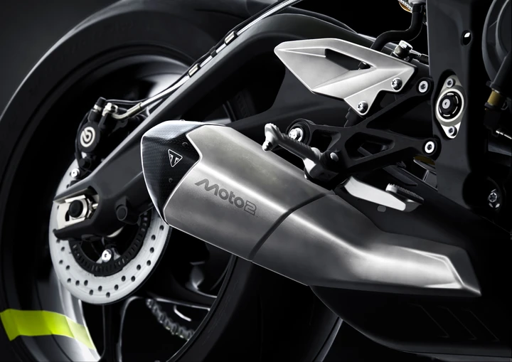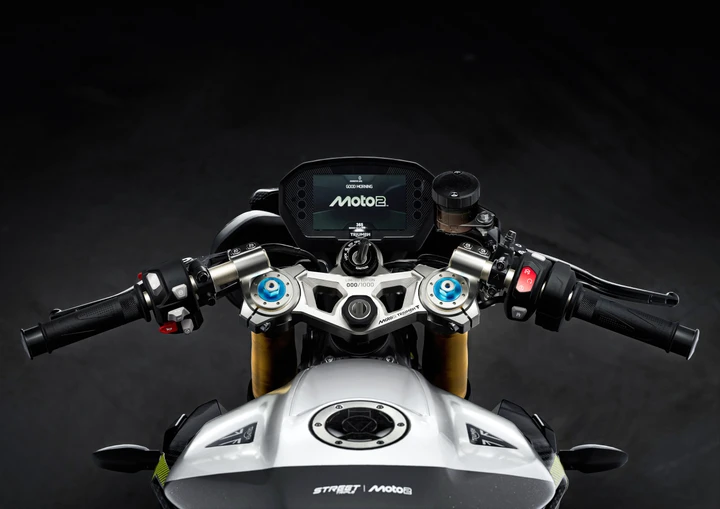 Ancora più ricercata è la Moto2 Edition, che adotta pannelli laterali, parafango anteriore, carter inferiore e terminale con finiture in fibra di carbonio. Il telaio posteriore giallo acceso e i dettagli colorati sottolineano il legame diretto con il mondo delle corse. Ogni esemplare è numerato individualmente sul top yoke, che riporta anche il marchio Moto2, mentre la strumentazione TFT da 5” prevede una grafica dedicata. La sella presenta un rivestimento tecnico con goffratura antiscivolo, studiato per offrire il massimo grip anche nelle staccate più decise.