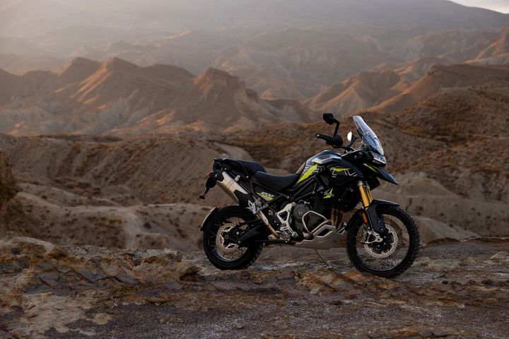 Passando alla Tiger 1200, le novità si concentrano in particolare sulla dotazione tecnologica. Le due nuove versioni speciali ricevono di serie i sistemi Blind Spot Assist e Lane Change Assist, introdotti per la prima volta su questo modello. A queste si aggiungono le selle riscaldate per pilota e passeggero, elemento ora incluso nell’equipaggiamento standard. La moto adotta sospensioni semi-attive Showa con escursione da 200 millimetri e impianto frenante Brembo ad alte prestazioni. Anche in questo caso sono previste sei modalità di guida sulla Desert Edition, mentre la Alpine ne propone cinque, in linea con le esigenze di chi privilegia il comfort e il viaggio su strada.