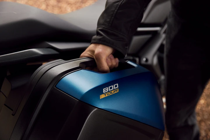 L’ergonomia della Tiger Sport 800 Tour è stata ottimizzata per lunghi tragitti, con una posizione di guida spaziosa, sella a 835 millimetri da terra e parabrezza regolabile con una sola mano. Il peso, comprensivo di bagagli, è di 232 kg, mentre il serbatoio da 18,6 litri promette una buona autonomia grazie a consumi dichiarati di 4,7 litri ogni 100 chilometri. L’intera capacità di carico arriva a 106 litri e consente di trasportare due caschi integrali di grandi dimensioni o il necessario per un fine settimana fuori città.
