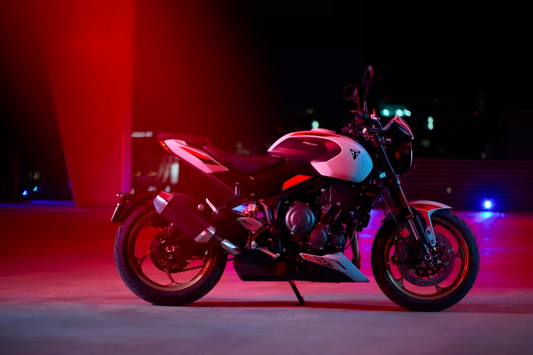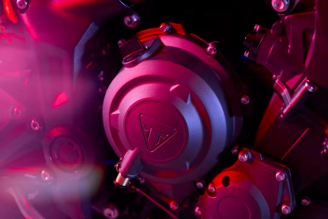 Le finiture in alluminio spazzolato, le verniciature intense e la qualità dei materiali confermano l’attenzione di Triumph per il design e la funzionalità. Il terminale di serie, nero e compatto, si può sostituire con uno sportivo Akrapovič più leggero, disponibile come accessorio ufficiale, pensato per chi desidera un sound ancora più grintoso.