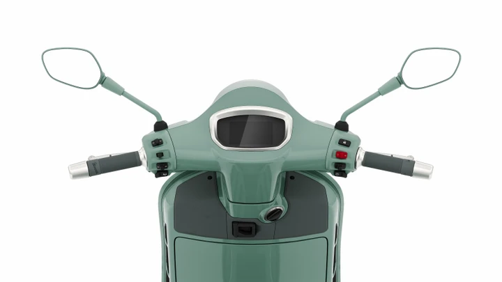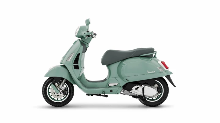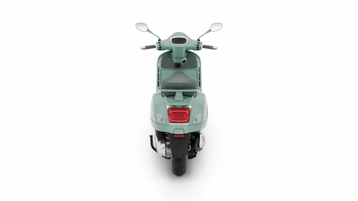 Altri dettagli tono su tono in verde più scuro della Vespa 80th caratterizzano sella (con cuciture in vista), inserti in gomma sulla pedana poggiapiedi, cover sul retroscudo e anche le manopole. Anche i cerchi sono verniciati in Verde Pastello e si caratterizzano per un design che reinterpreta la struttura chiusa in lamiera stampata dei cerchi ruota dell’epoca. Si tratta di un riferimento ai modelli del passato, a cominciare dalla Vespa 98 del 1946. Inoltre, i cerchi presentano la scritta “Est. 1946" e il canale con finitura diamantata.