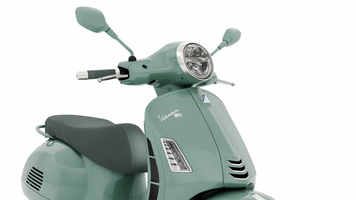 La serie speciale Vespa 80th si caratterizza per la scelta della colorazione Verde Pastello che riprende il codice colore delle primissime produzioni monocolore del modello di casa Piaggio, recuperato dagli archivi storici. L’azienda racconta che il linguaggio estetico della serie Vespa 80th riflette i valori di praticità e funzionalità che nell’immediato dopoguerra furono al centro del progetto di questa due ruote. Dunque, la tinta scelta per la carrozzeria si estende così anche a numerosi dettagli quali i profili dello scudo, il maniglione passeggero, gli specchi retrovisori, i blocchetti dei comandi e il leveraggio della sospensione anteriore. La carrozzeria ha finitura lucida, i dettagli invece una finitura satinata.