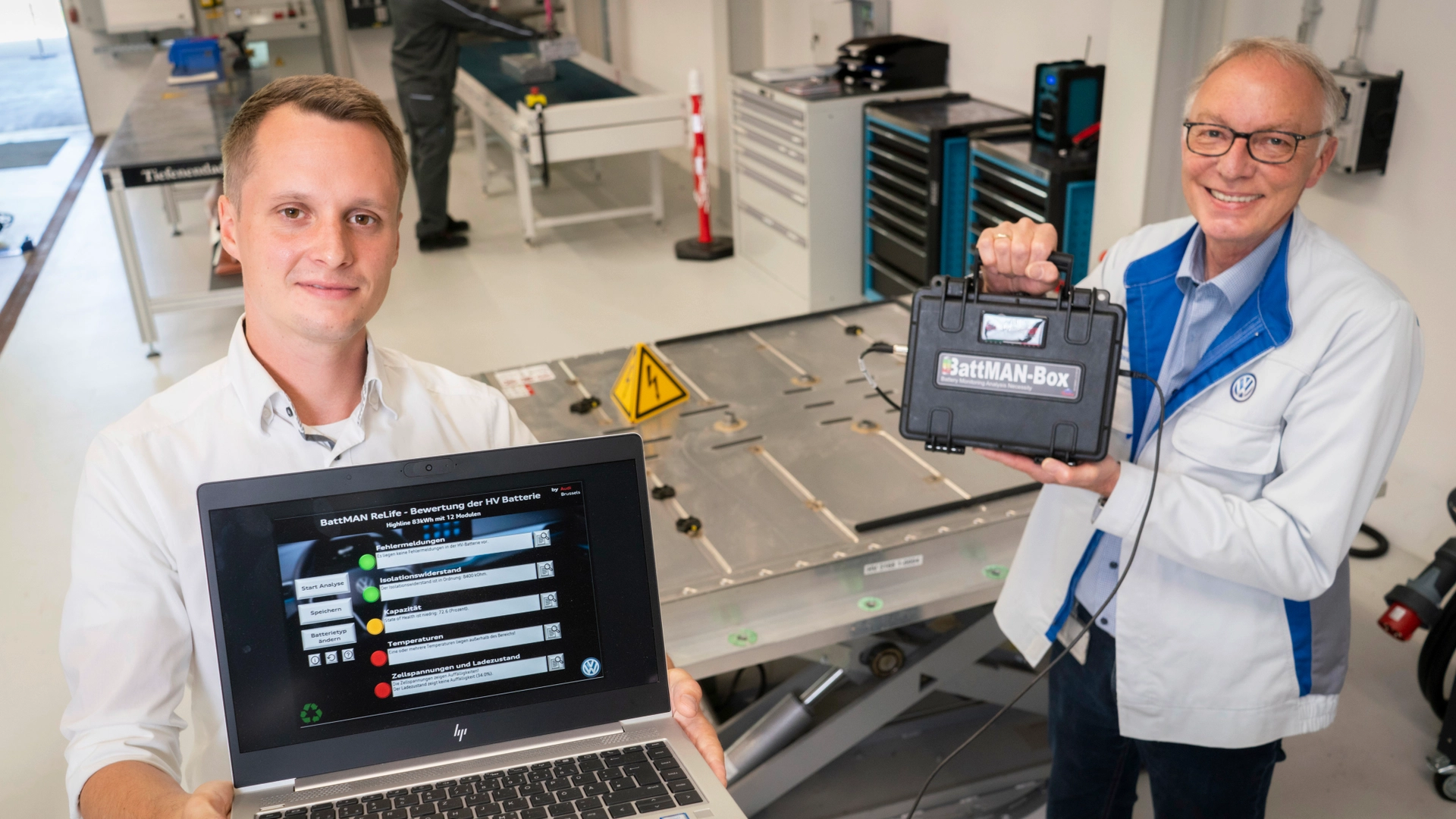 BattMan è stato poi sviluppato ulteriormente grazie alla collaborazione con alcuni esperti di riciclaggio di Volkswagen Group Components prima dell'apertura dell'impianto pilota per il riciclo delle batterie a Salzgitter. A seguito di questo lavoro di sviluppo, il nuovo software di diagnostica è diventato lo strumento di analisi che fornisce una prima valutazione affidabile di una batteria in pochi minuti.