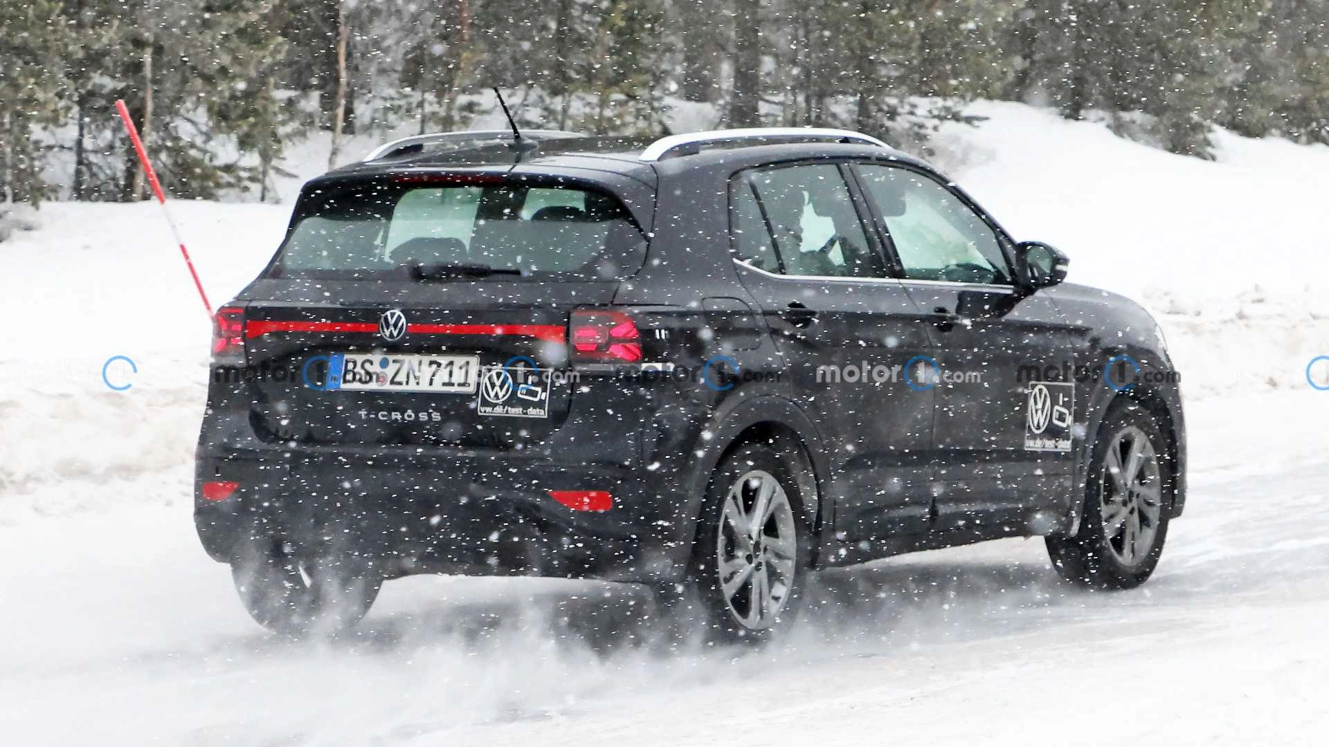 Le immagini mostrano una vettura con un leggero camuffamento. Guardando con attenzione, si notano alcune pellicole e adesivi sulla carrozzeria che vanno a nascondere le principali novità di design che Volkswagen introdurrà con il restyling della T-Cross. Un modo anche per far assomigliare il modello restyling a quello attuale. Il facelift introdurrà alcuni ritocchi ai fari, alla griglia e al paraurti. Lo stile del nuovo frontale dovrebbe presentare alcune somiglianze con quello della Taigo.