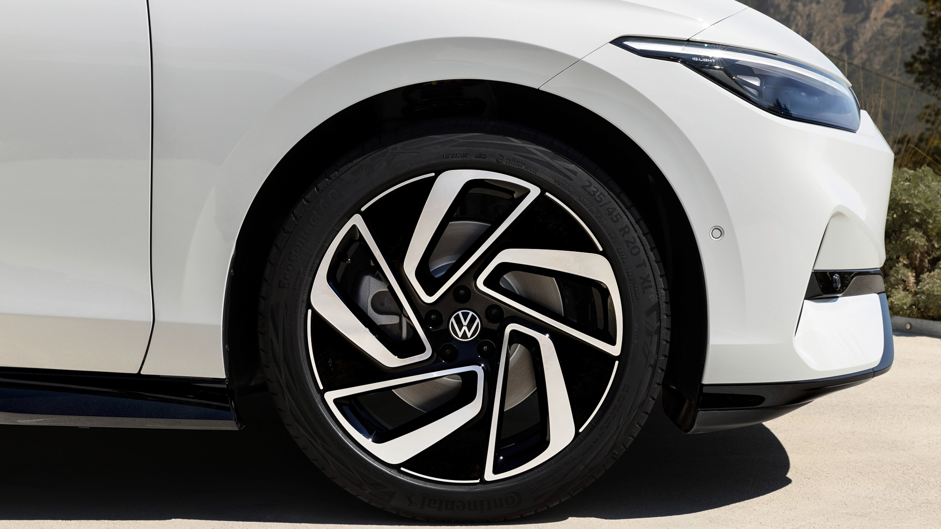 Nuova Volkswagen ID.7 misura 4.961 mm lunghezza x 1.862 mm larghezza (senza specchietti esterni) x 1.538 mm altezza, con un passo di 2.966 mm. La casa automobilistica fa sapere di aver lavorato molto sull'aerodinamica del suo nuovo modello. Il risultato è un Cx di 0,23. Al frontale, troviamo fari con il sottile listello a LED per le luci diurne e per gli indicatori di direzione integrato nella parte superiore. Una fascia LED congiunge i fari. Sotto, nel paraurti, spiccano le prese d’aria laterali verso i passaruota.