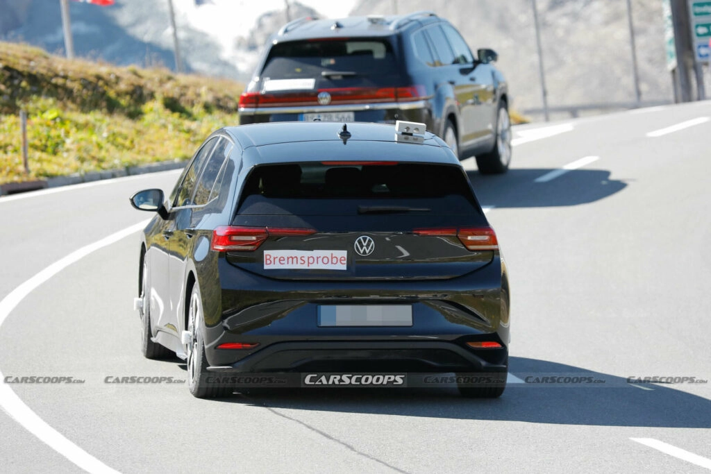 Da notare la presenza di alcuni sensori sulle ruote. Infatti, il muletto è impegnato ad effettuare test sui freni come specifica anche la scritta in tedesco "bremsprobe" (letteralmente prova sui freni). Non si vedono gli interni. Tuttavia, non dovrebbero differire troppo da quelli che abbiamo visto con il recente restyling della ID.3. Probabilmente, troveremo in più alcuni dettagli pensati per richiamare la natura più sportiveggiante di questo modello.