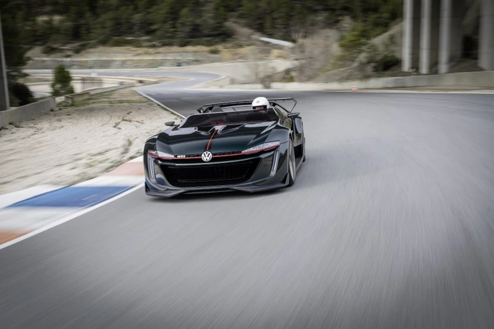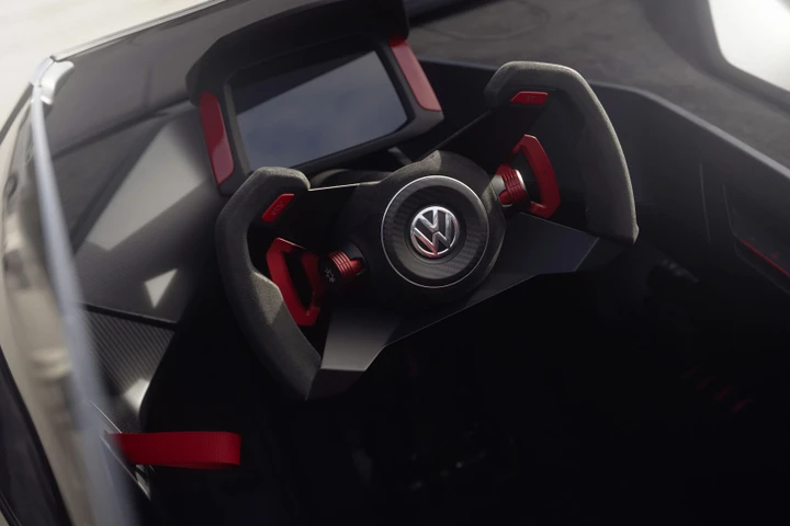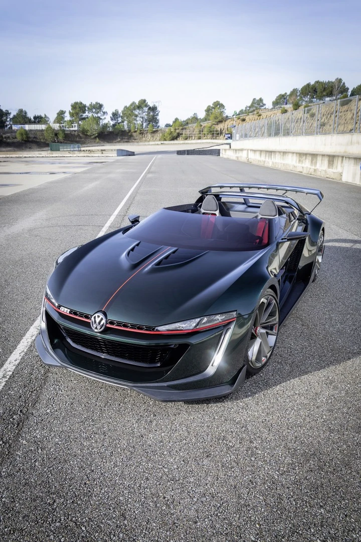 Basata sulla Golf Mk7, il concept è una due posti di circa 4,2 metri di lunghezza che si caratterizza per l’assenza del tetto e il parabrezza tagliato. Inoltre, le portiere propongono un’apertura verso l’alto come quella di alcune supercar, mentre i montanti posteriori sono stati trasformati in roll-bar. Un concept decisamente radicale che fa trasparire il suo collegamento con la Golf GTI solo per alcuni richiami tra cui la griglia anteriore con una trama a nido d’ape, oltre ovviamente al badge GTI. I cerchi sono da 20 pollici (pneumatici 235/35 ZR20 davanti e 275/30 ZR20 dietro) e permettono di intravedere l’impianto frenante carboceramico con pinze dei freni di colore rosso. La nuova tina è probabilmente un richiamo alla colorazione Dark Moss Green Metallic della Golf GTI Edition 50.