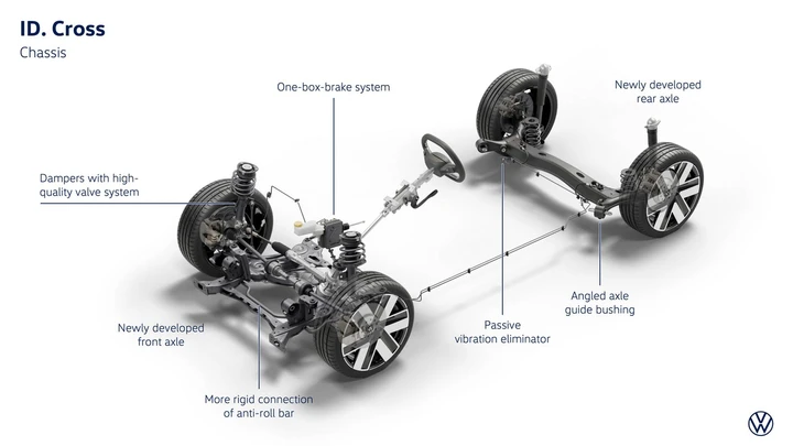 La ID.Cross sarà spinta dal nuovo motore elettrico APP290, disponibile in tre livelli di potenza: 116 CV, 135 CV e 211 CV. Per quanto riguarda le batterie, i clienti potranno scegliere tra due tagli di diversa capacità: