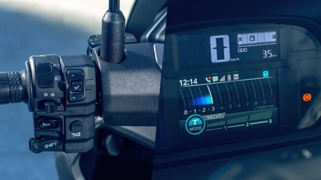 Il nuovo NMAX 155 Tech Max introduce, come anticipato, l’innovativa trasmissione YECVT (Yamaha Electric Continuously Variable Trasmission), che porta l’esperienza di guida ad un livello superiore permettendo di scegliere tra modalità Sport e Town: nella prima il rapporto si accorcia per garantire regimi più elevati, accelerazioni brillanti e maggiore freno motore in decelerazione, mentre nella seconda viene privilegiata la fluidità e il comfort con giri più bassi e una guida rilassata; il sistema mantiene inoltre l’ultima modalità selezionata anche dopo lo spegnimento.